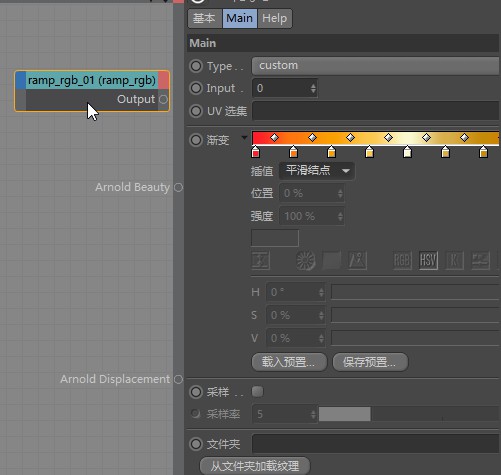 您可以选择内置渐变模式(如 u、v、圆形等),也可以选择自定义模式,在此模式中,贴图由“输入”(Input)参数控制。