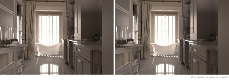 自适应采样提供了高保真图像的优化方法,用户可以在不损失最终图像质量的情况下,减少渲染时间,两个新的降噪解决方案可以让你使用更低的采样设置来优化渲染过程: