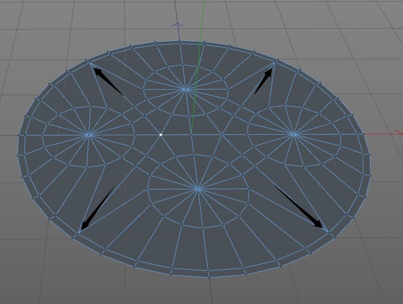 PS:处理模型上的三角面首先想到的是延着三角面的一边中点去加线,所以想到如下图选线去连接点/边