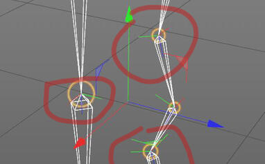 在建立骨骼中,有时候会遇到一些问题,其中一个就是骨骼没有对齐引起的, 具体为什么要进行骨骼轴心对齐,我布吉岛,问题是没对齐,绝对会出问题! Z 轴对齐:也就是上一级关节的 Z 轴,必须指向下一级关节。 根据上图红圈圈出的部分,我们可以看到:在 C4D 中使用关节工具,建立骨骼链的时候,默认是按 Z 轴(蓝色线条)进行对齐的。 但是我们在实际操作的过程中,肯定会修 -