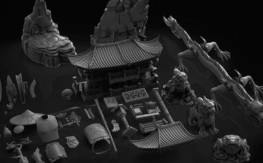 3D模型:中国复古风格建筑雕塑3D模型资源包 China Kit (.OBJ/.,ZBP/.ZTL格式)免费下载